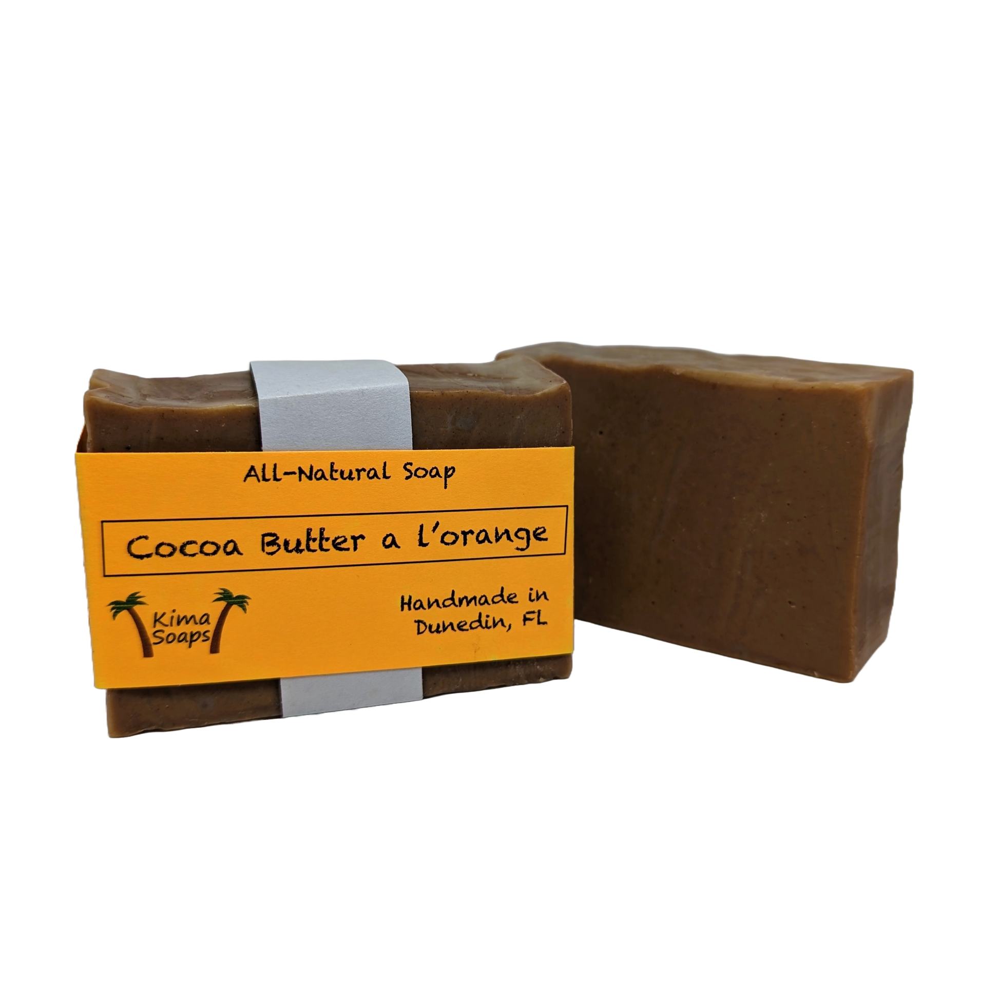 We’re excited about this newest member of the Kima Soaps line-up! A high (40%) proportion of gentle cocoa butter combines with pure cocoa powder for mild exfoliation, with sweet orange for added ambiance.