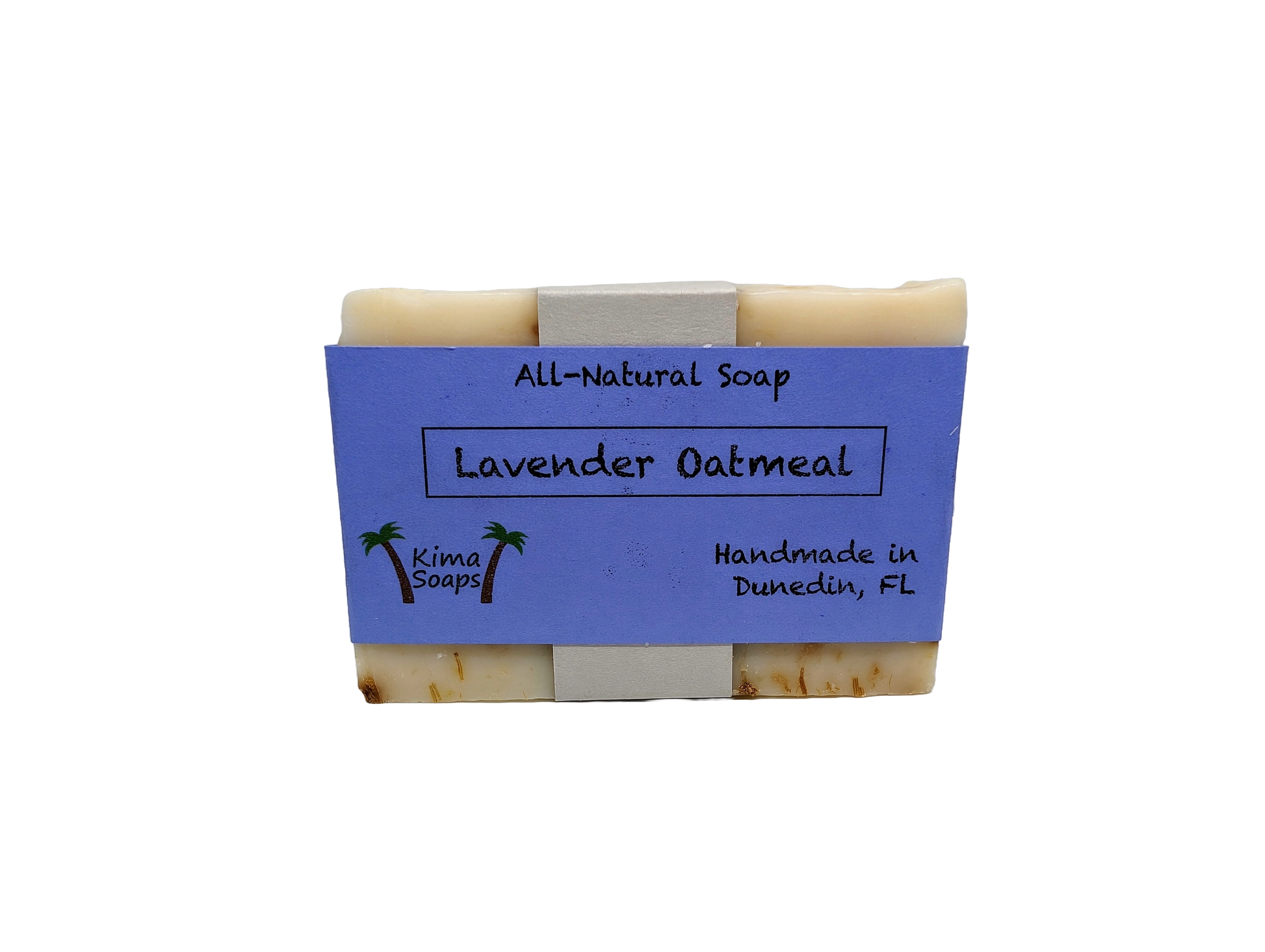 Ingredients: Saponified oils of olive, coconut, sustainably-sourced palm, apricot kernel, and castor; distilled water, sodium lactate (a natural salt), ground & whole lavender buds, colloidal oatmeal, essential oils of lavender & tea tree.